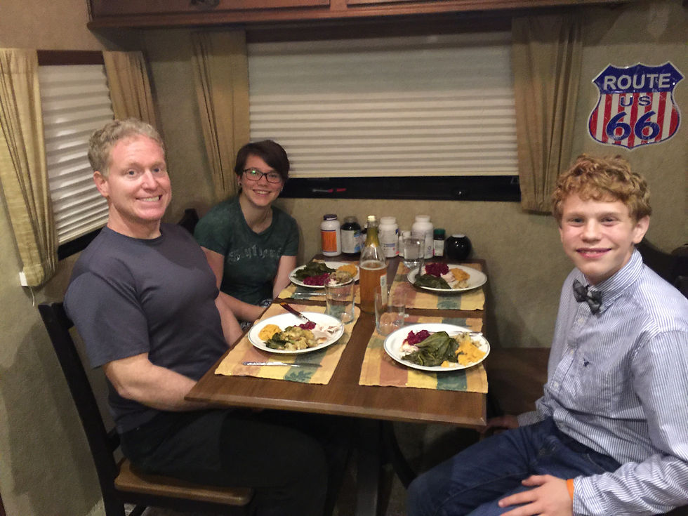 There were lots of Happy Thanksgiving messages on the beach, but I liked the turkey the best. I turned around and went to find the rest of my family, but didn’t have much luck. I searched for about 1/2 hour and then returned to the truck, which is where they were. I tried to text Blake, but he had forgotten his phone. Ah well, we found each other in the end and returned to the RV to start on supper.