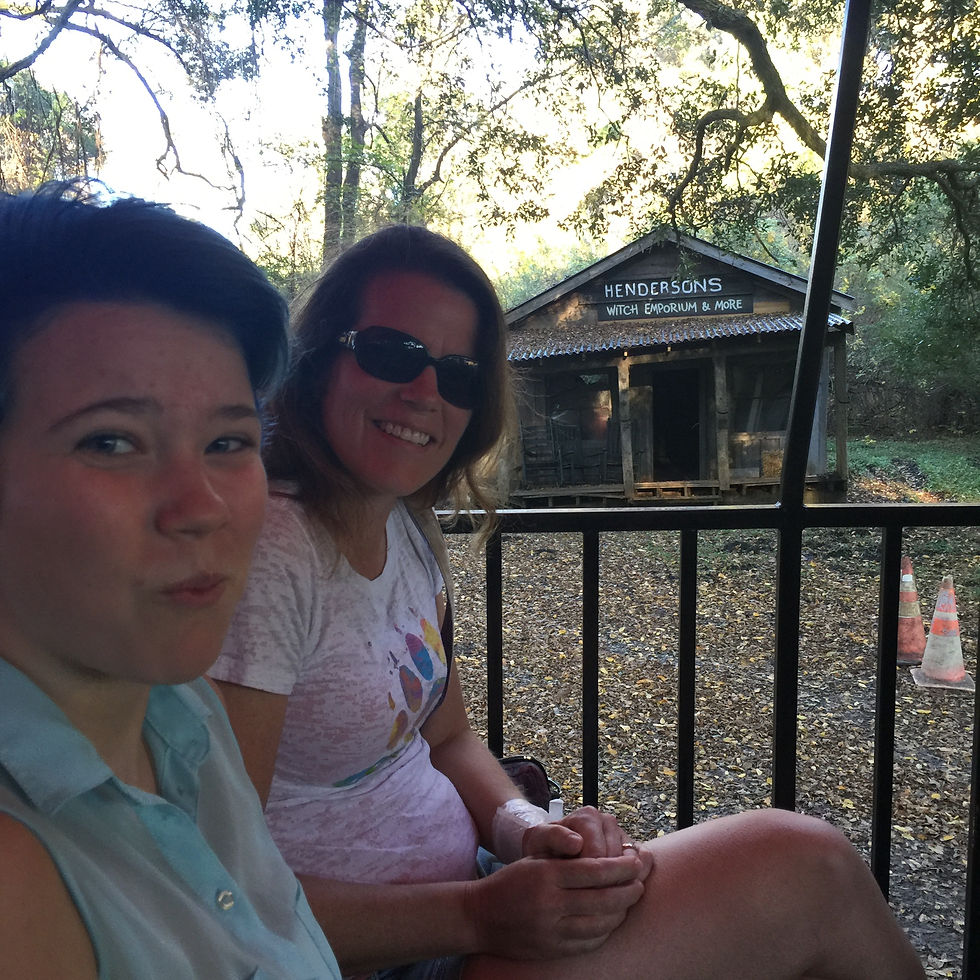 We also went on the tram tour of the whole property. That was a really good tour and our tour guide was Eddie. He had ancestral ties to the property, but through the slaves. There were many generations of his family that had worked on this land throughout time. He took us all around the property and when we went by the pond we saw an alligator sunning herself on the banks. I guess she has a couple of young ones as well and there is also a large male alligator in the area. They are quite territorial and the male will stay away from the female while she has her young with her. We went by the area where they had the Pecan groves, these were planted after the Civil War when the Plantation lost it’s labour force (the slaves, since slavery was abolished finally). Some slaves stayed on the plantation to work as paid employees, but many left. Currently the property grows tomatoes, squash, strawberries, blueberries, and peaches. It is a u-pick garden and many locals come out when the different produce is in season. In this picture of Natasha and I on the tram, the building in the background was evidently in the movie Queen with Halle Berry. The Notebook was also filmed on the property, as was North and South and Army Wives.