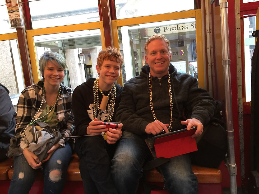 We are back on the shuttle today and heading to the National WWII Museum. It is in the Warehouse District near the French Quarter. Due to the fact that Mardi Gras is on Tuesday, the French Quarter is very busy now and we have a new drop off spot. This worked out great for us though, because we just got on one of the red trolley line and it took us close to the museum. We can ride the trolley all day for $3, so we chose to do that. The trolley operator was really funny and gave us a tour while the trolley was trundling along. When we went by Jackson Square, she shouted out that it was built for Michael Jackson. It was, in fact, to commemorate Andrew Jackson. When we got to Toulouse Street, she shouted out it was named because your pants are too loose. Every time someone disembarked she would say, “glad you came, sorry you had to stay so long”. We enjoyed our trolley ride very much.